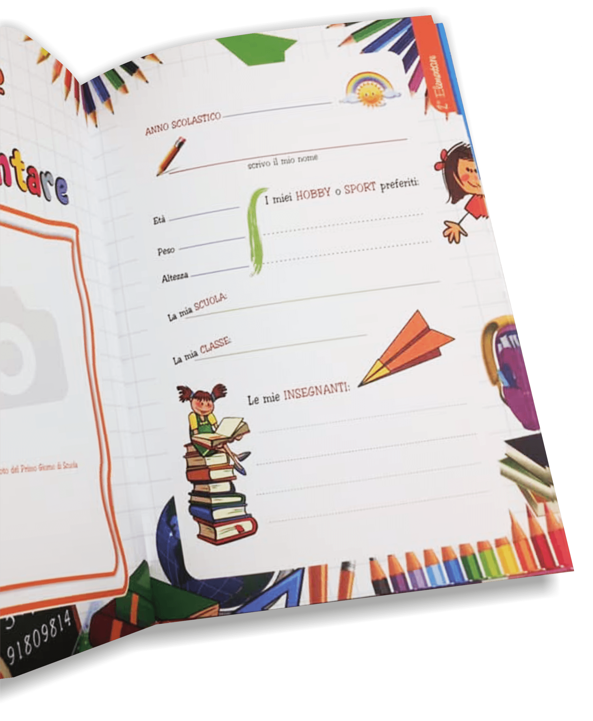 Ogni pagina è studiata per accogliere foto, pagelle, disegni e messaggi - un piccolo tesoro di carta che racconta chi eri e chi stai diventando.